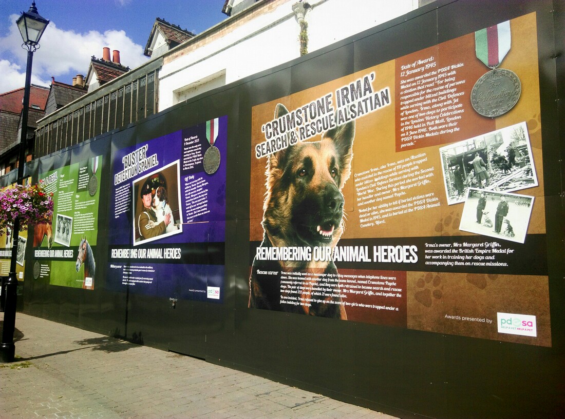 12/06/2015 | Claudio_VL | 0 commentiCartellone "pubblicitario" visto a Staines-upon-Thames, vicino a Londra. Virgolette d'obbligo, visto che non e' pubblicizzato alcun prodotto o servizio: il cartellone mostra cinque animali "eroici" scomparsi: due cavalli, due cani e un gatto, tutti responsabili del salvataggio di molte vite umane. La campagna si intitola "Remembering Our Animal Heroes", traducibile come "ricordiamoci dei nostri eroici animali".
